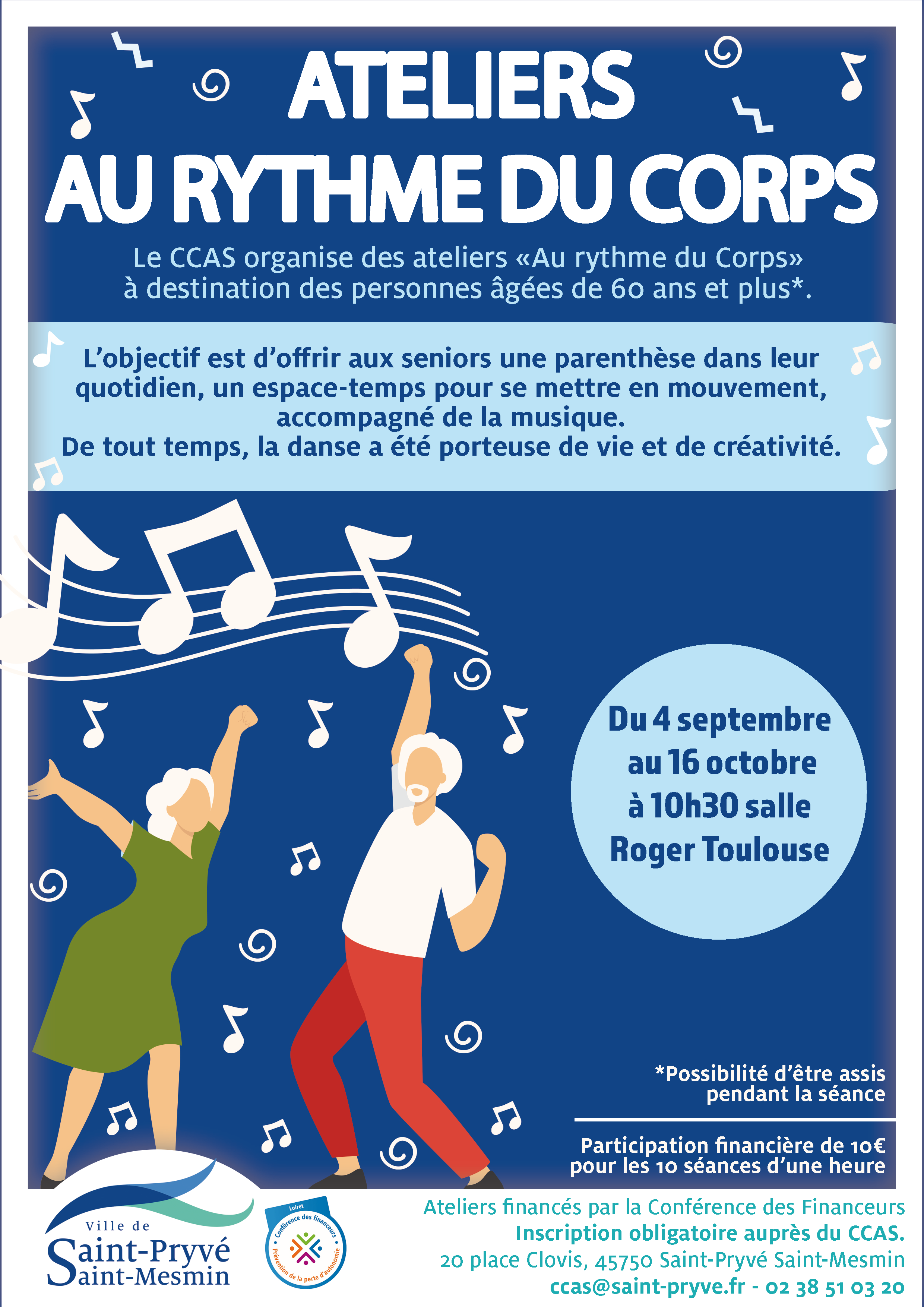 Les ateliers "Au rythme du corps" reviennent du 4 septembre au 16 octobre à10h30, salle Roger Toulouse. Vous avez la possibilité d'être assis pendant