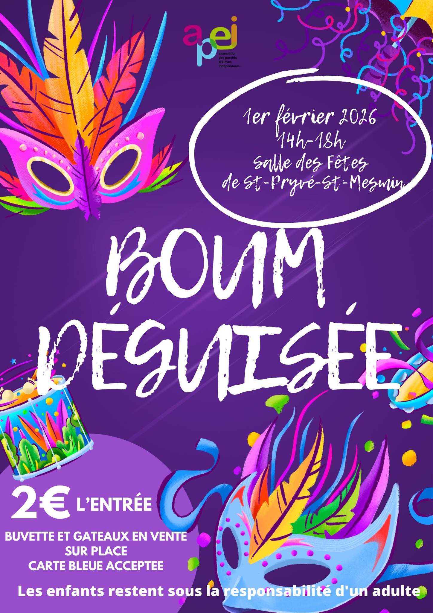 L’APEI organise sa traditionnelle boum déguisée le dimanche 1er février 2026 de 14h à 18h à la salle des fêtes.